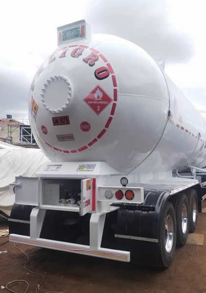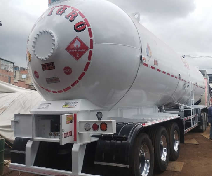 Construimos remolques cisterna de gas (GLP) en làmina grado 70, de 50 m3 a 60 m3, deposito de gas (GLP) para transporte con Norma ASME certificado. Diseño efectuados de acuerdo al requerimiento del cliente, las terminaciones son en pintura poliuretano de calidad, logotipos y luces led de nueva generación con accesorios totalmente americanos, como ejes, sistema de frenos y repuestos.